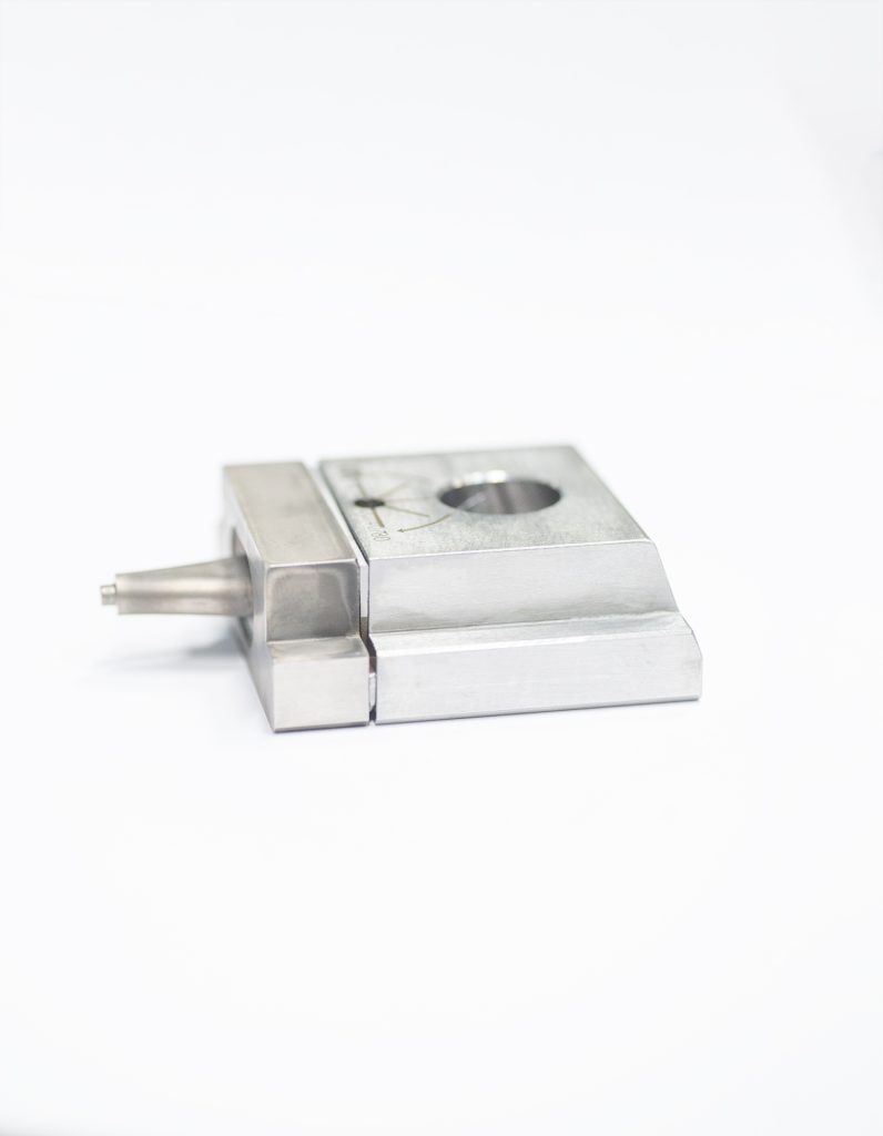 Der Dauertest erfolgte mithilfe einer Serienform für Mundstücke eines Musikinstrumentes bestehend aus 4 Schiebernestern, wobei eines mit der Rasterung ausgestattet wurde und ein weiteres mit einem stufenlos verstellbaren Komplettschieber. Die verstellbare Druckplatte mit Rasterung befindet sich auf der Düsenseite und der Komplettschieber mit stufenloser Verstellmimik auf der Auswerferseite.